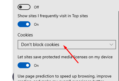 Afhankelijk van je versie kan dit verschillen, maar u klikt door naar 'Privacy & Security' of naar 'Advanced settings'. Hier zorgt u ervoor dat in het openklapmenu de optie don't block cookies aangeduid staat.